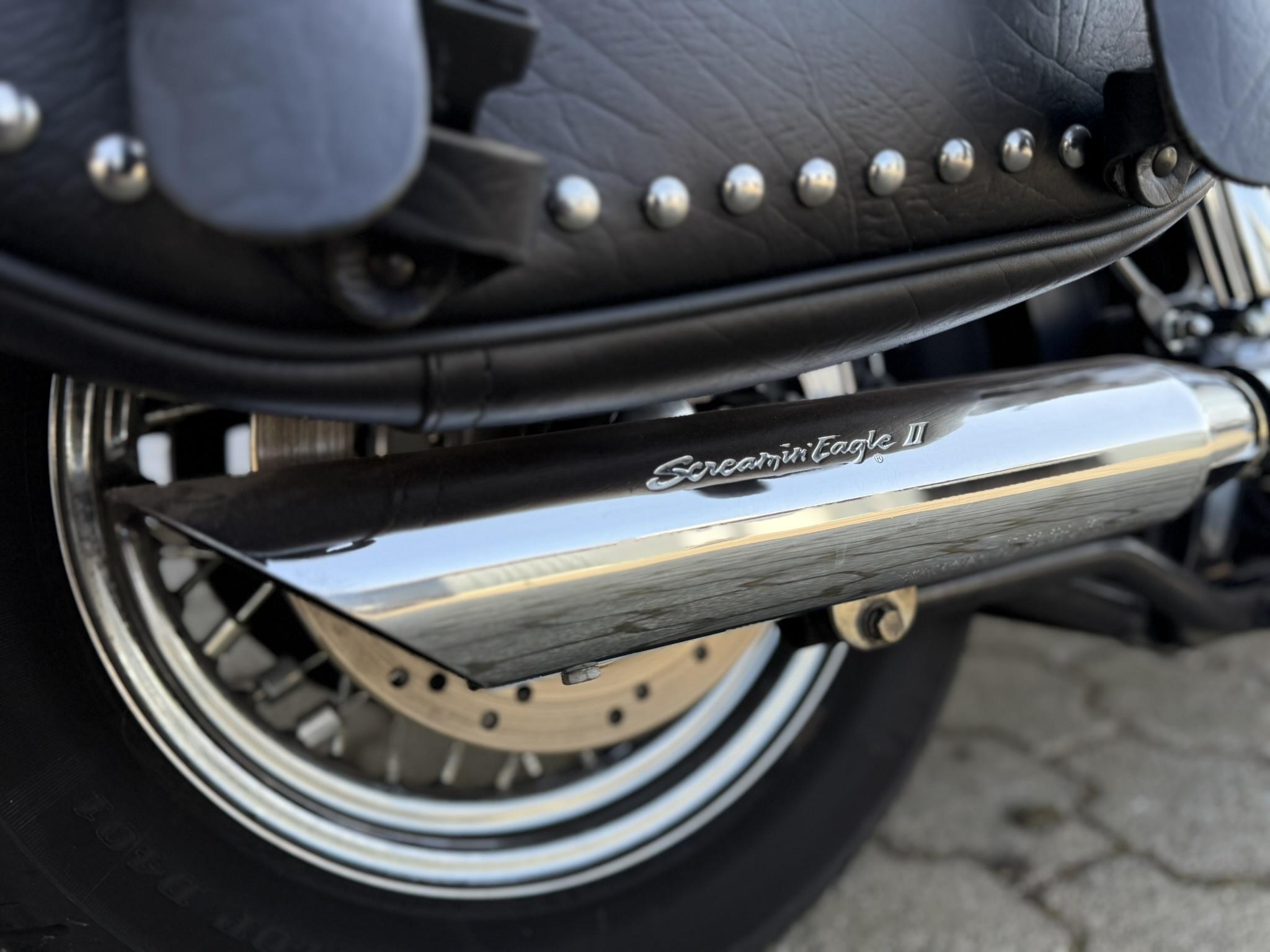 Harley-Davidson FLSTC Heritage Softail Classic 100th Anniversary er en ikonisk cruiser med klassisk stil og lavt kilometertal – kun 2.500 km. Denne særlige 100th Anniversary-model kombinerer tidløst design med komfort og funktionalitet og står som et attraktivt valg for både samlere og erfarne motorcyklister.