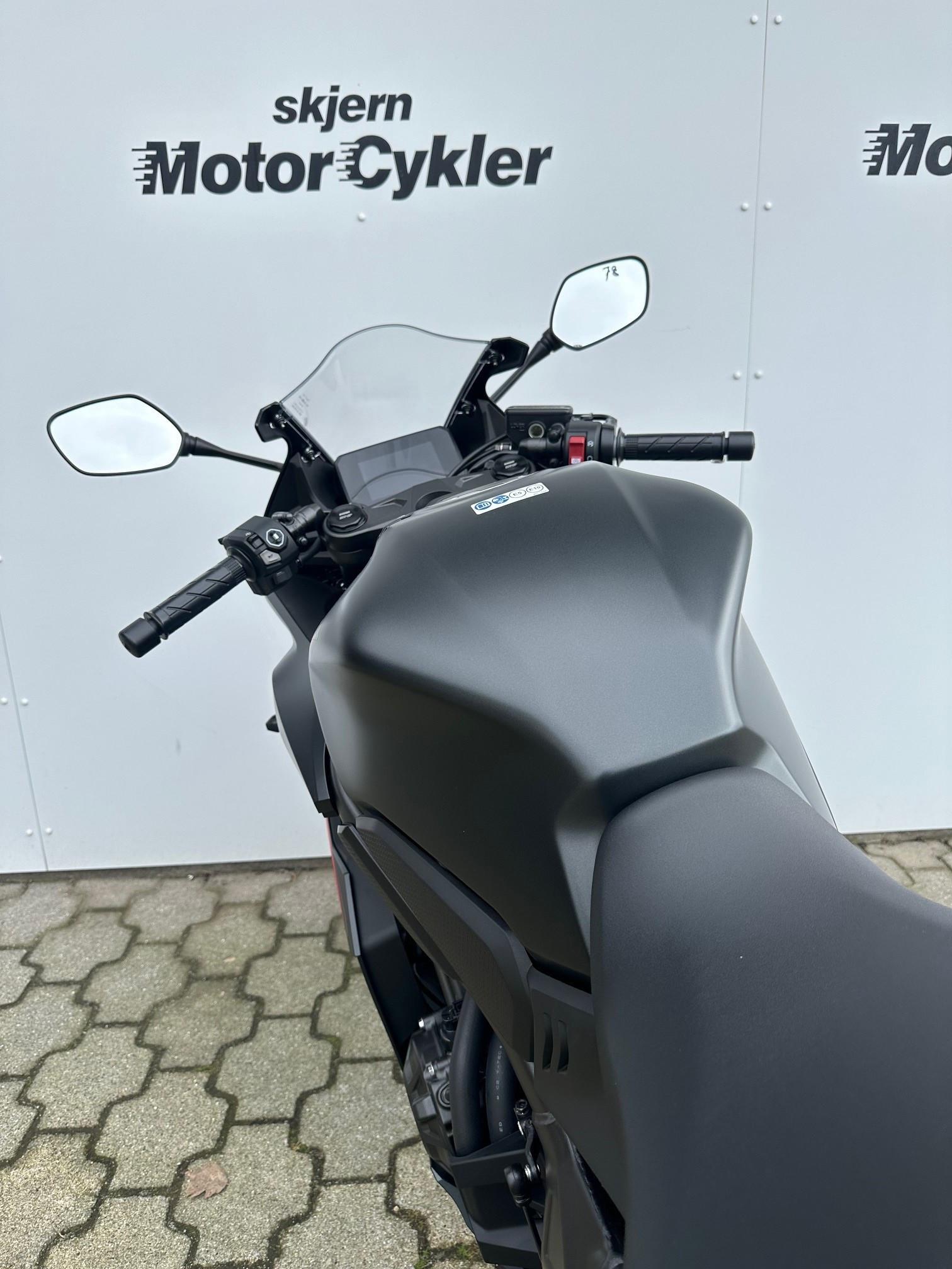 Udstyret med ABS, traction control, gearindikator, fuldkåbe og LED-lygter.