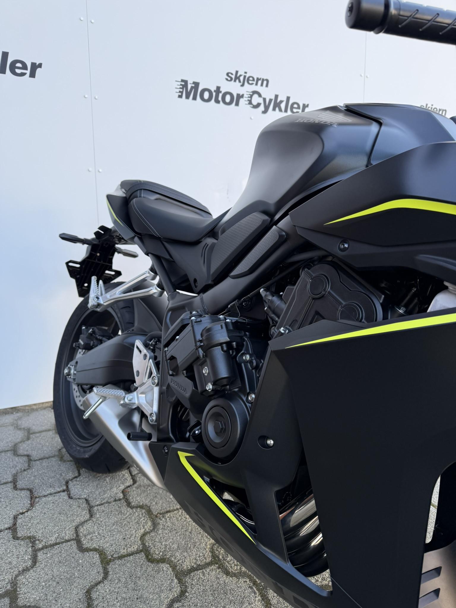 Honda CBR650R E-Clutch er udstyret med ABS bremser, traction control (TCS), quickshift, gearindikator og brændstofindsprøjtning, som tilsammen sikrer høj kontrol, sikkerhed og præcision. Den fuldt kåbede sportsprofil understreger modellens raceinspirerede DNA, mens LED for- og baglygte giver et moderne udtryk og god synlighed. Samtidig kan modellen drosles til A2 kørekort, hvilket gør den attraktiv for både nyere og erfarne motorcyklister.