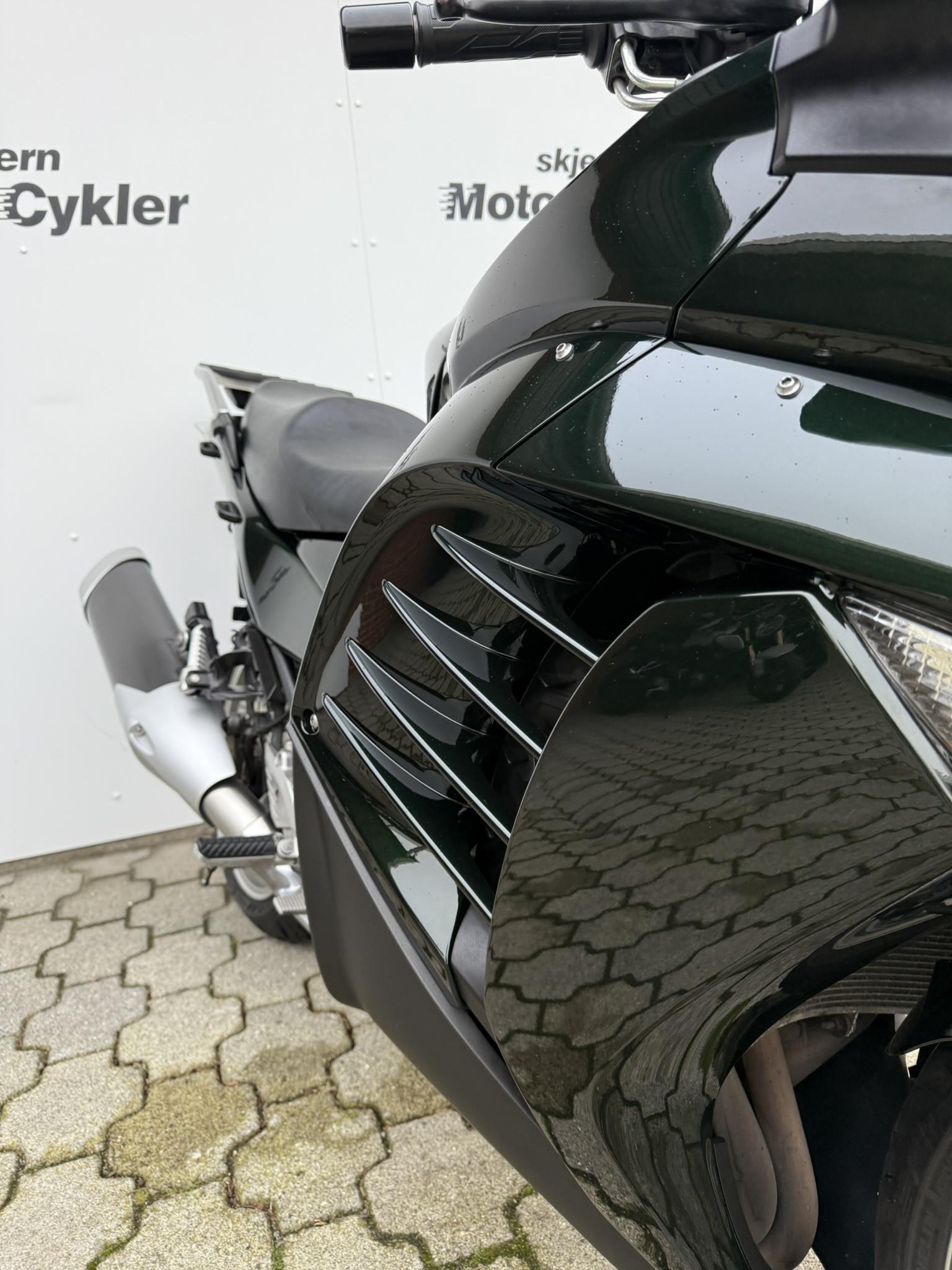 Kawasaki GTR1400 årgang 2011 er en rendyrket touringmotorcykel til dig, der ønsker komfort, kraft og avanceret udstyr samlet i én gennemført pakke. Her får du en solid og veludstyret maskine, skabt til lange stræk og store oplevelser på landevejen.