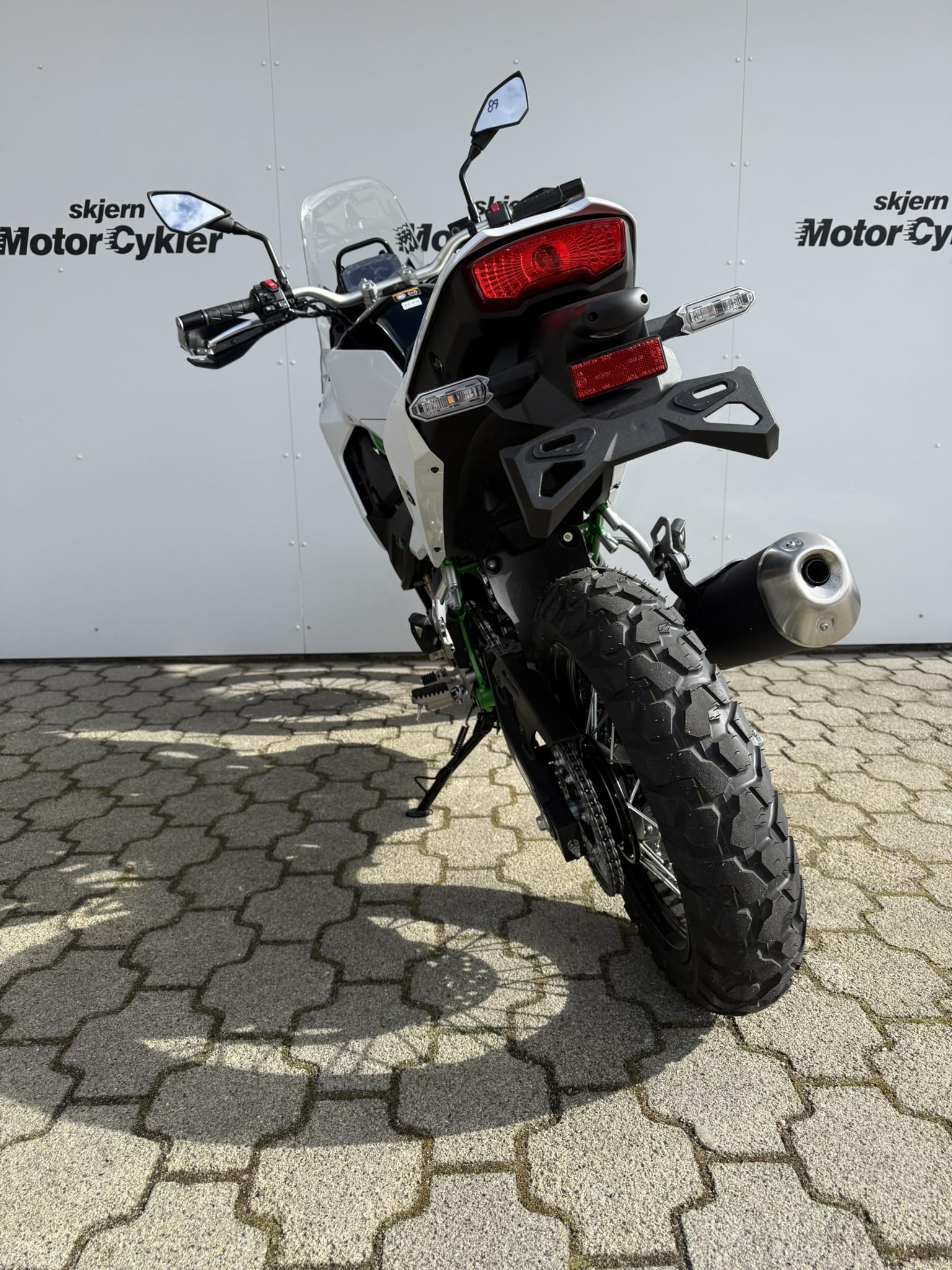 Den 451 cm³ vandkølede paralleltwin-motor yder 33,4 kW (45,4 PS) og er koblet til en 6-trins gearkasse, hvilket giver en smidig og kontrolleret køreoplevelse. Med 16 liters tank, lang affjedringsvandring (210 mm for / 196 mm bag) og en køreklar vægt på 195 kg får du en velafbalanceret adventure-motorcykel med bred anvendelighed.
