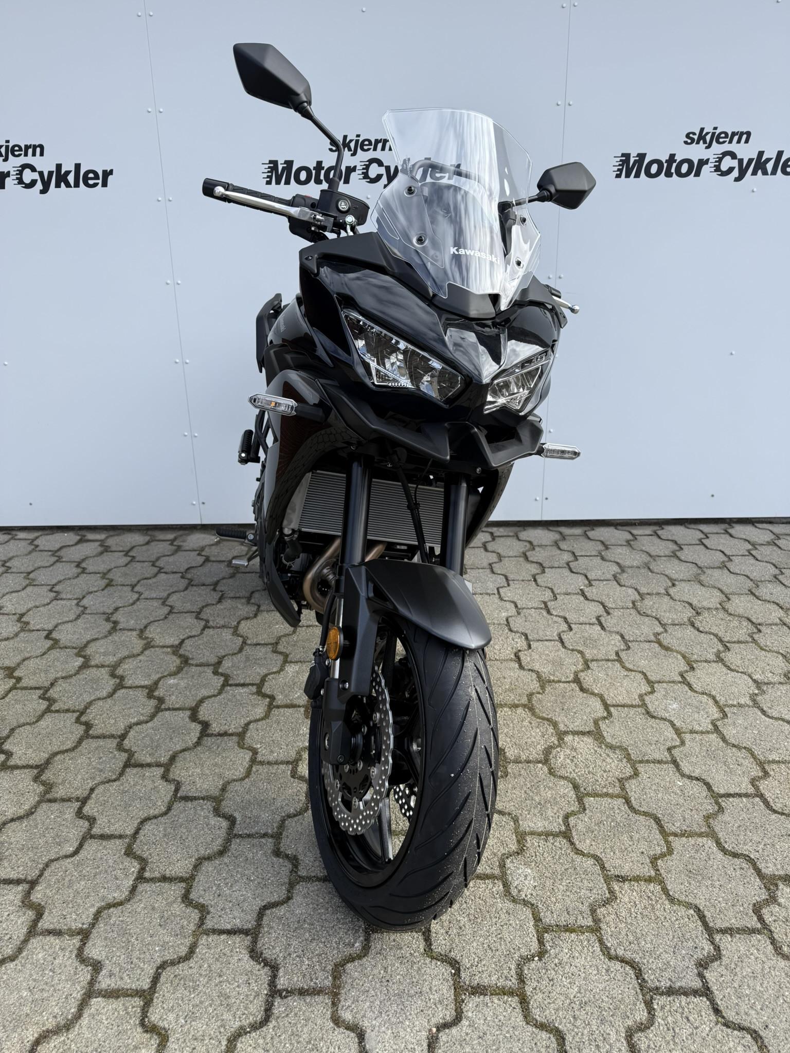 Versys 650 er udstyret med ABS-bremser og TCS (traction control) for tryg og kontrolleret kørsel, gearindikator og slipper kobling for mere flydende gearskift samt LED forlygte og LED baglygte for optimal synlighed. Den elektroniske indsprøjtning sikrer effektiv og responsiv motorydelse – ideelt til både bykørsel og landeveje. Denne model kan også køres med A2-kørekort, hvilket gør den attraktiv for en bred målgruppe.
