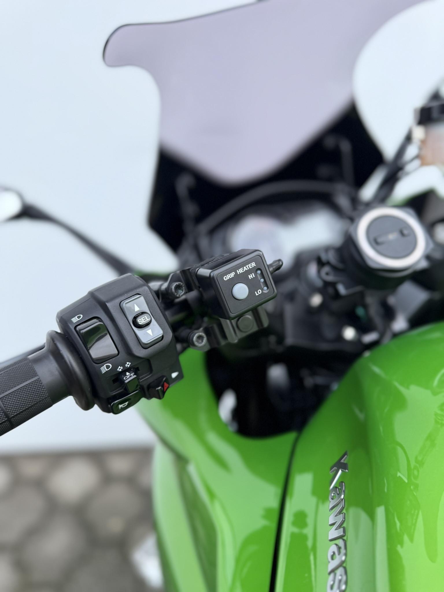 Denne Kawasaki Z1000SX 2014 er udstyret quickshift, som sikrer en dynamisk og glidende gearskifteoplevelse. Gearindikator giver et godt overblik under kørslen, og varmehåndtag øger komforten på kølige dage. Den justerbare kåbeglas og fuldkåbe bidrager til god vindbeskyttelse, hvilket gør modellen særligt velegnet til touring og motorvejskørsel. Slip-on udstødning tilfører et mere markant udtryk, mens tankbeskytter og sidetasker understreger dens praktiske og rejseklare setup.