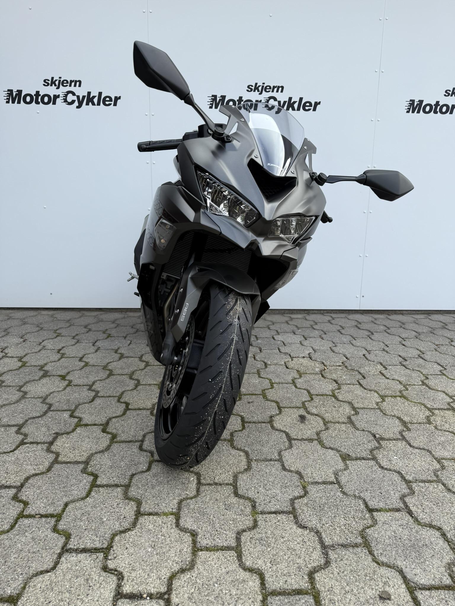 Kawasaki ZX4RR 2026 // Lime Green (GN1) // , ABS bremser, TCS (traction control), wheelie control, kørecomputer, gearindikator, fuldkåbe, indsprøjtning, LED baglygte, LED forlygte, A2 kørekort muligt, quickshift/blip Kan også leveres uden afgift, klar til trackdays på racerbanerne. Nu er den her! Super Sport maskinen der har været et savnet medlem af klassen siden starten af 90’erne.Som den eneste supersport model i 400 cc segmentet, med en firecylindret rækkemotor, er dette en klasse for sig. 80 hk med fuld RAM air til en opgivet kørerklar vægt på 189 kg