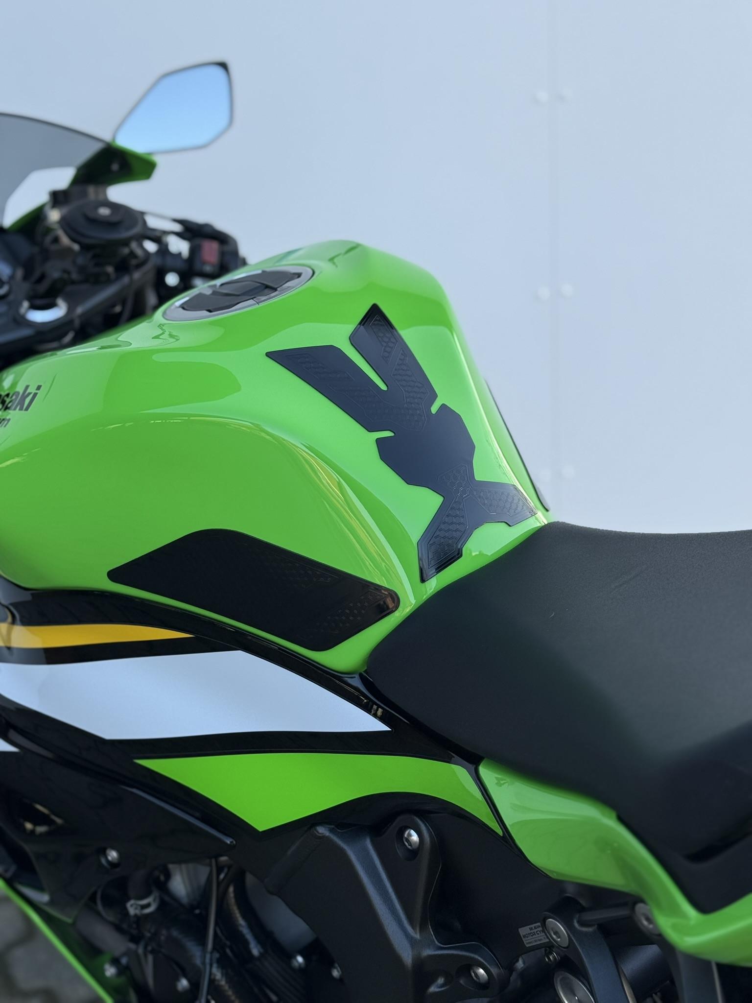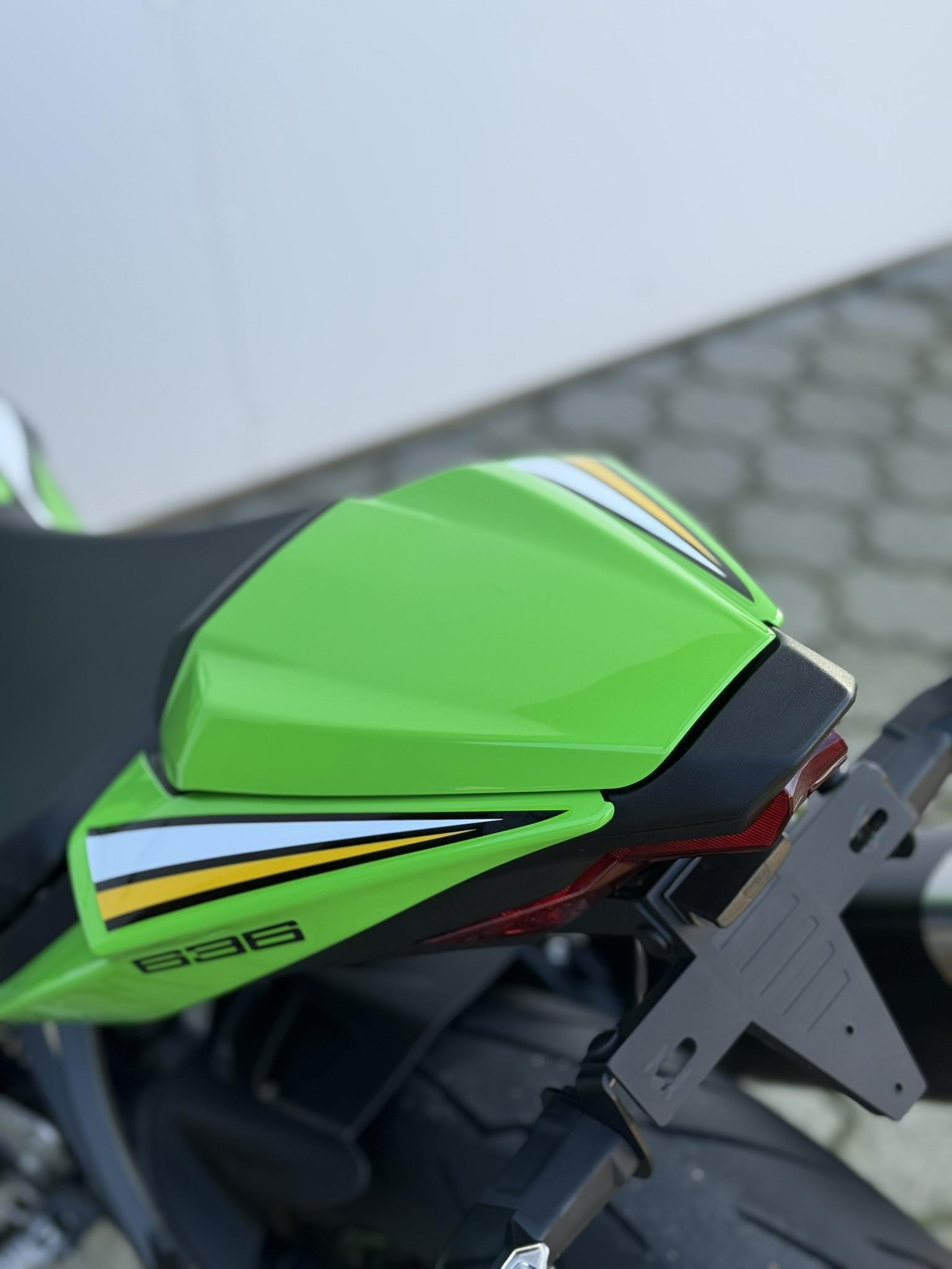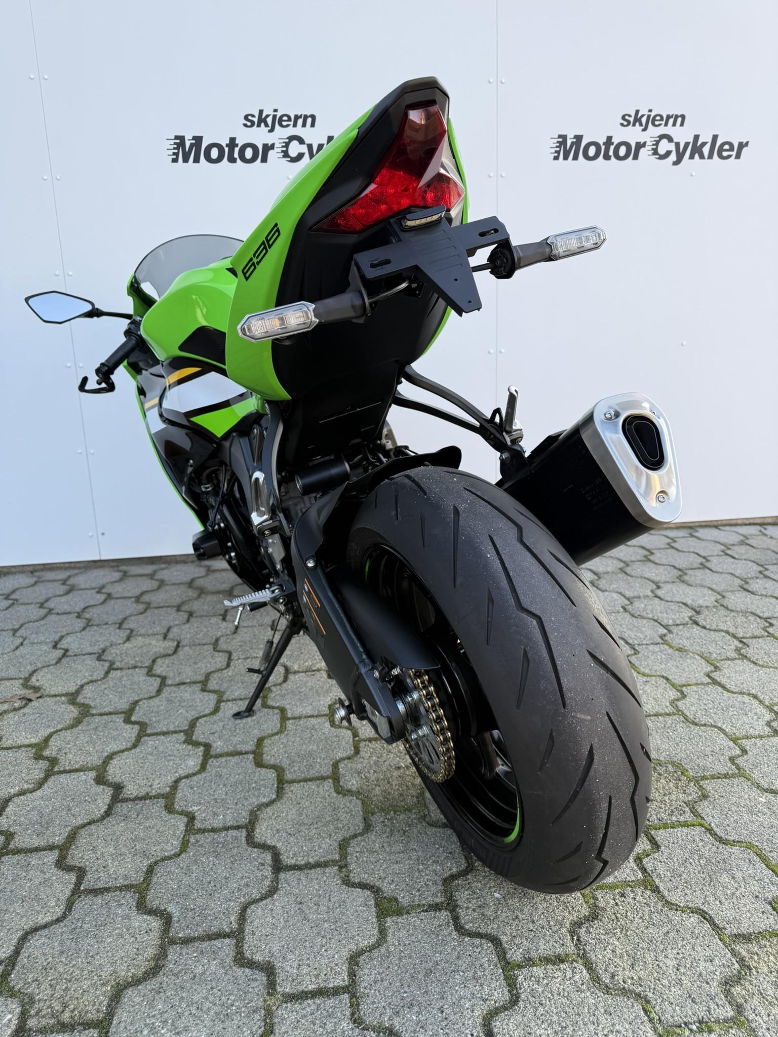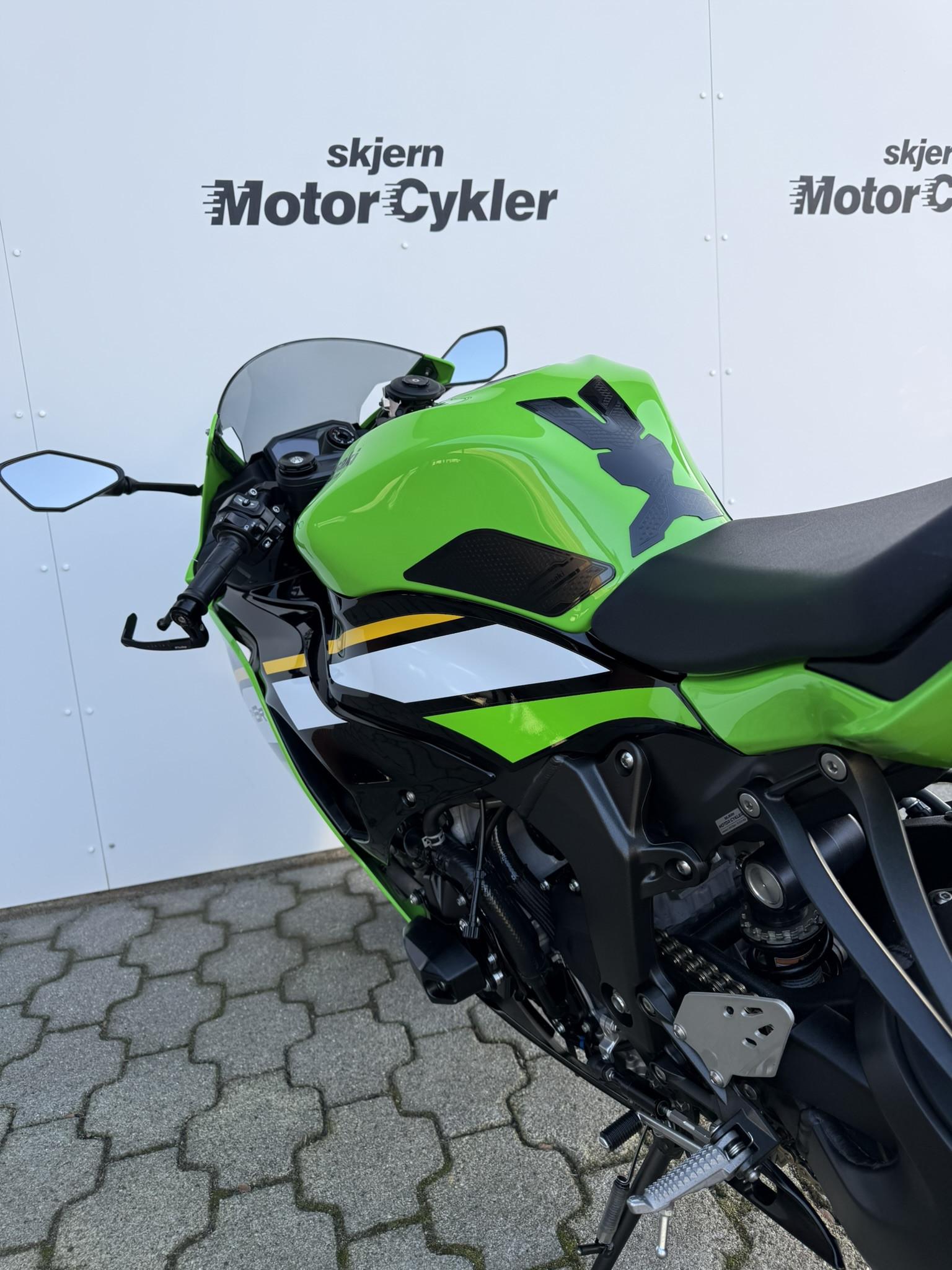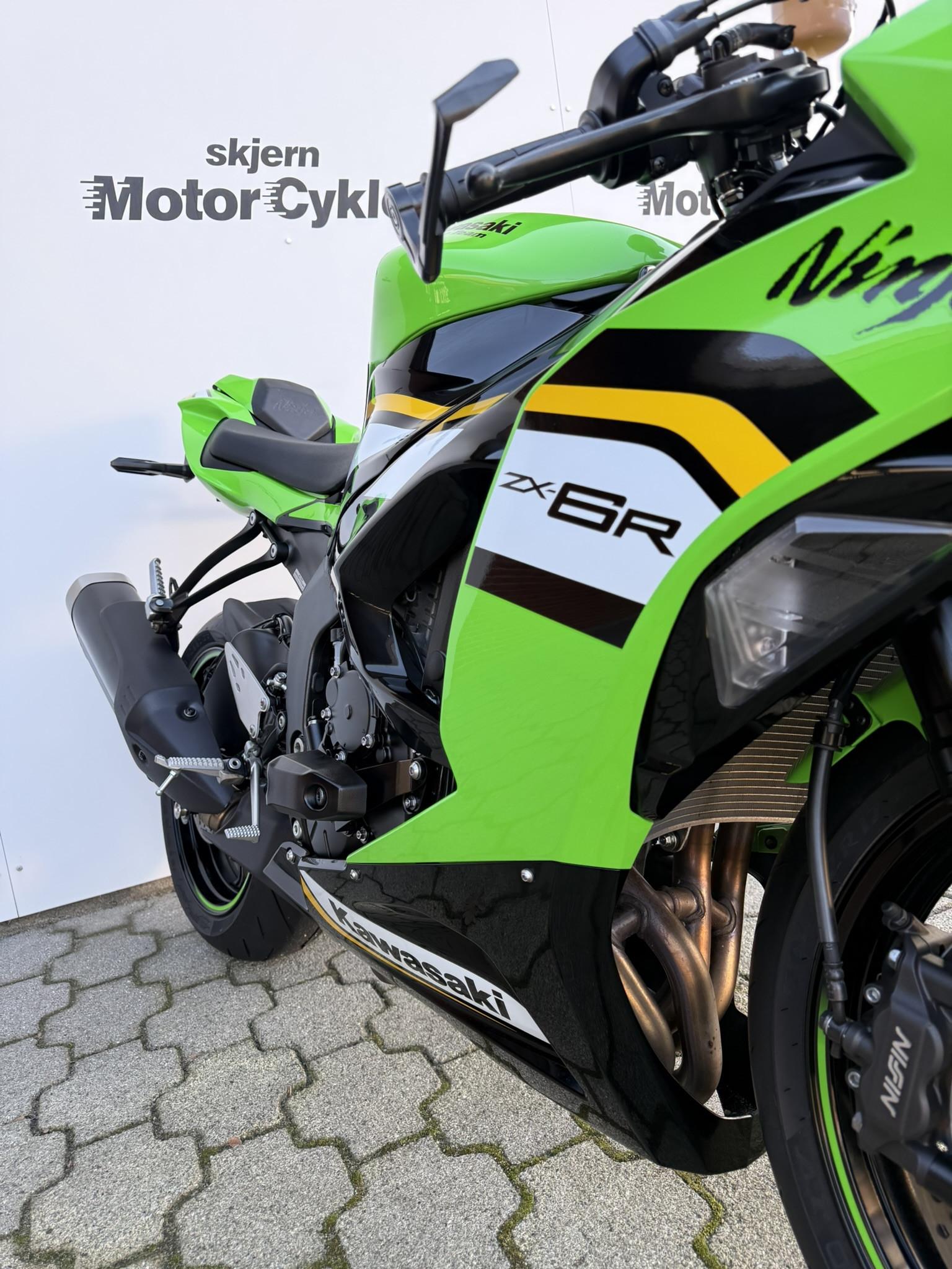 Ninja ZX-6R har en fuldkåbe med tonet kåbeglas, LED-for- og baglygte, quickshifter, gearindikator, traction- og wheelie control, samt corner-ABS for maksimal sikkerhed og kontrol. Komfort og funktionalitet øges med Pillion seat cover, Quadlock trådløs opladning, crashpads, brake og clutch guard og anden nummerpladeholder.