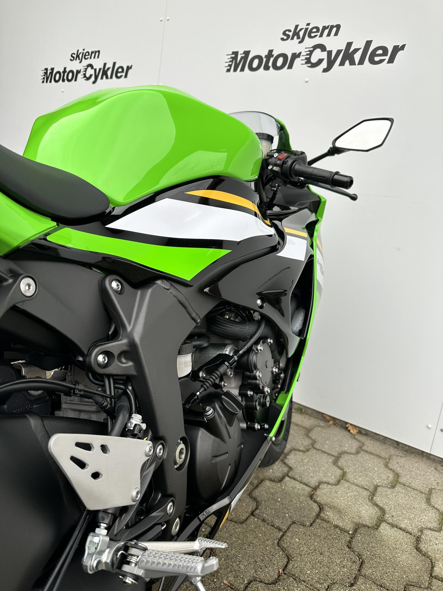 Kawasaki ZX6R 2025 GN1 Lime green //til omgående levering// Metallic ABS bremser, TCS (traction control), wheelie control, gearindikator, startspærre, indsprøjtning, fuldkåbe, quickshift, LED baglygte, LED forlygte