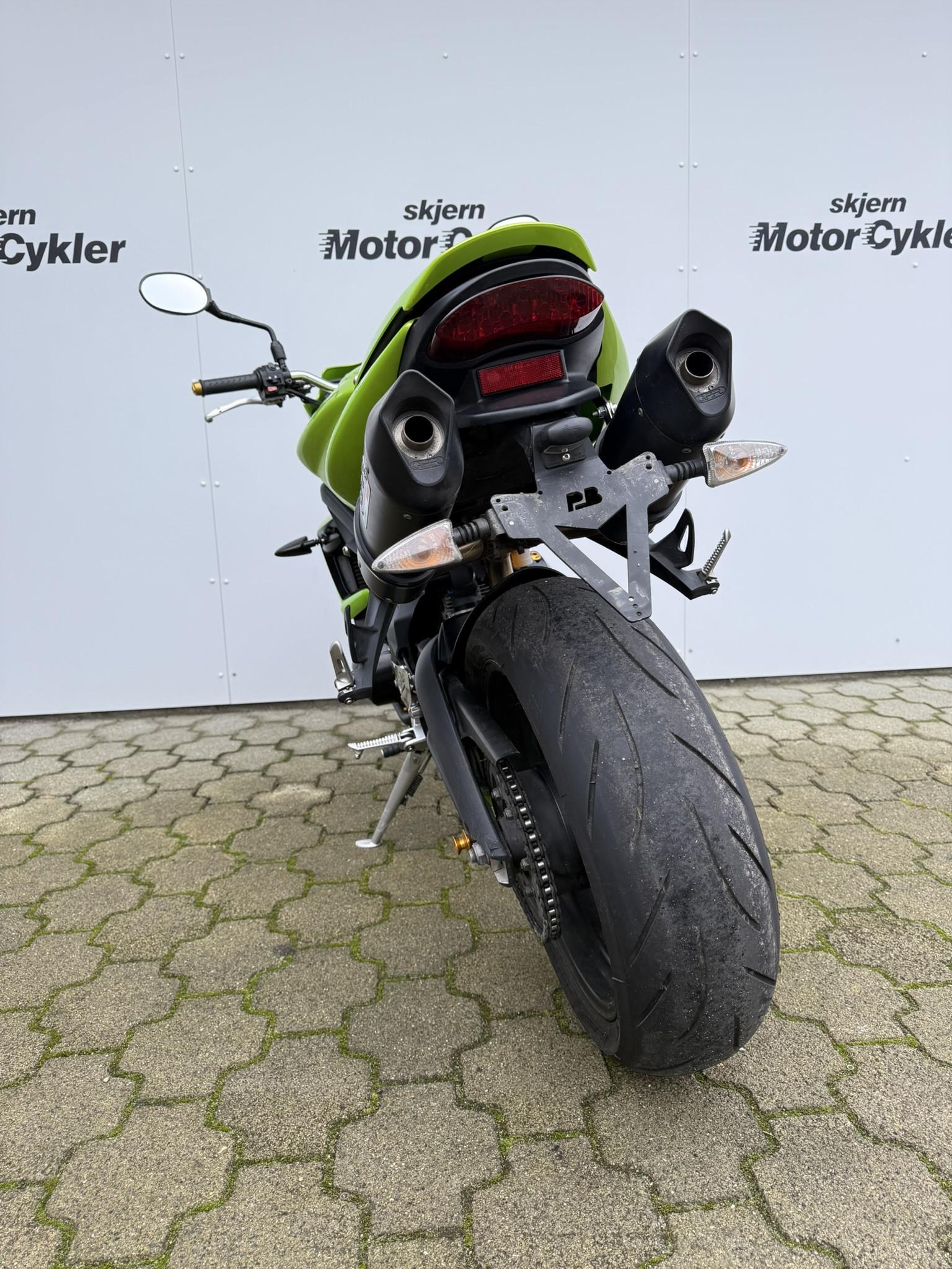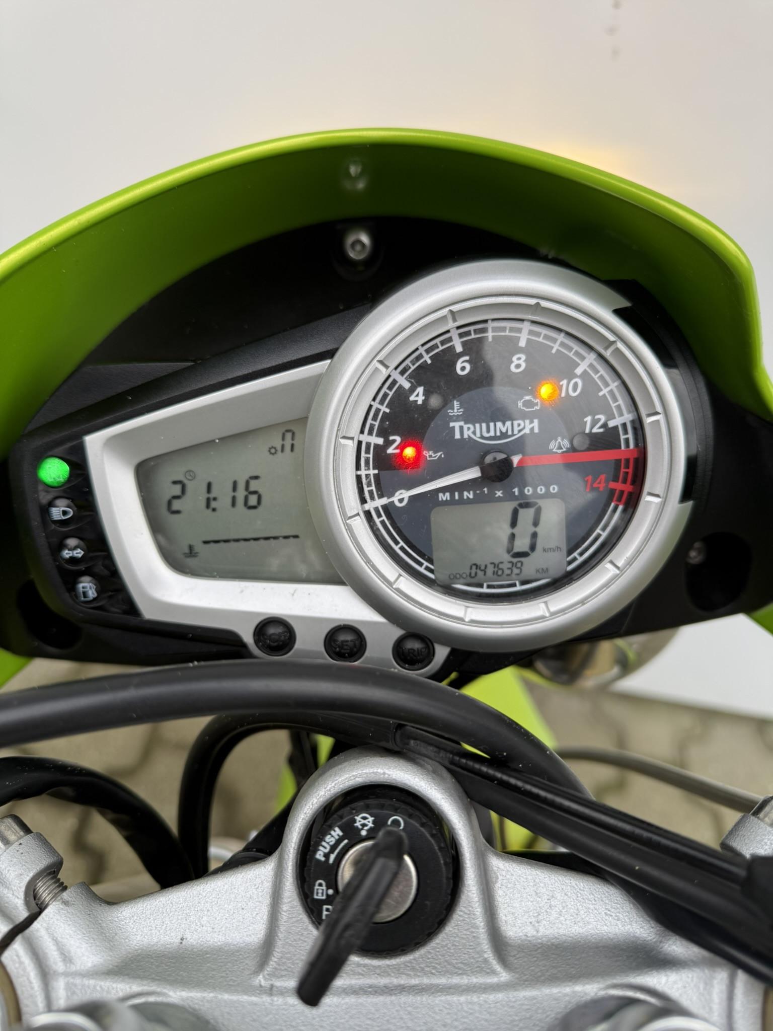 Den indsprøjtningsstyrede motor sikrer en jævn og præcis respons, mens gearindikator giver et godt overblik under aktiv kørsel. Den monterede carbon udstødning bidrager til et mere markant og sporty udtryk, og den alternative nummerpladeholder understreger det rene, minimalistiske design, som Triumph Street Triple er kendt for.