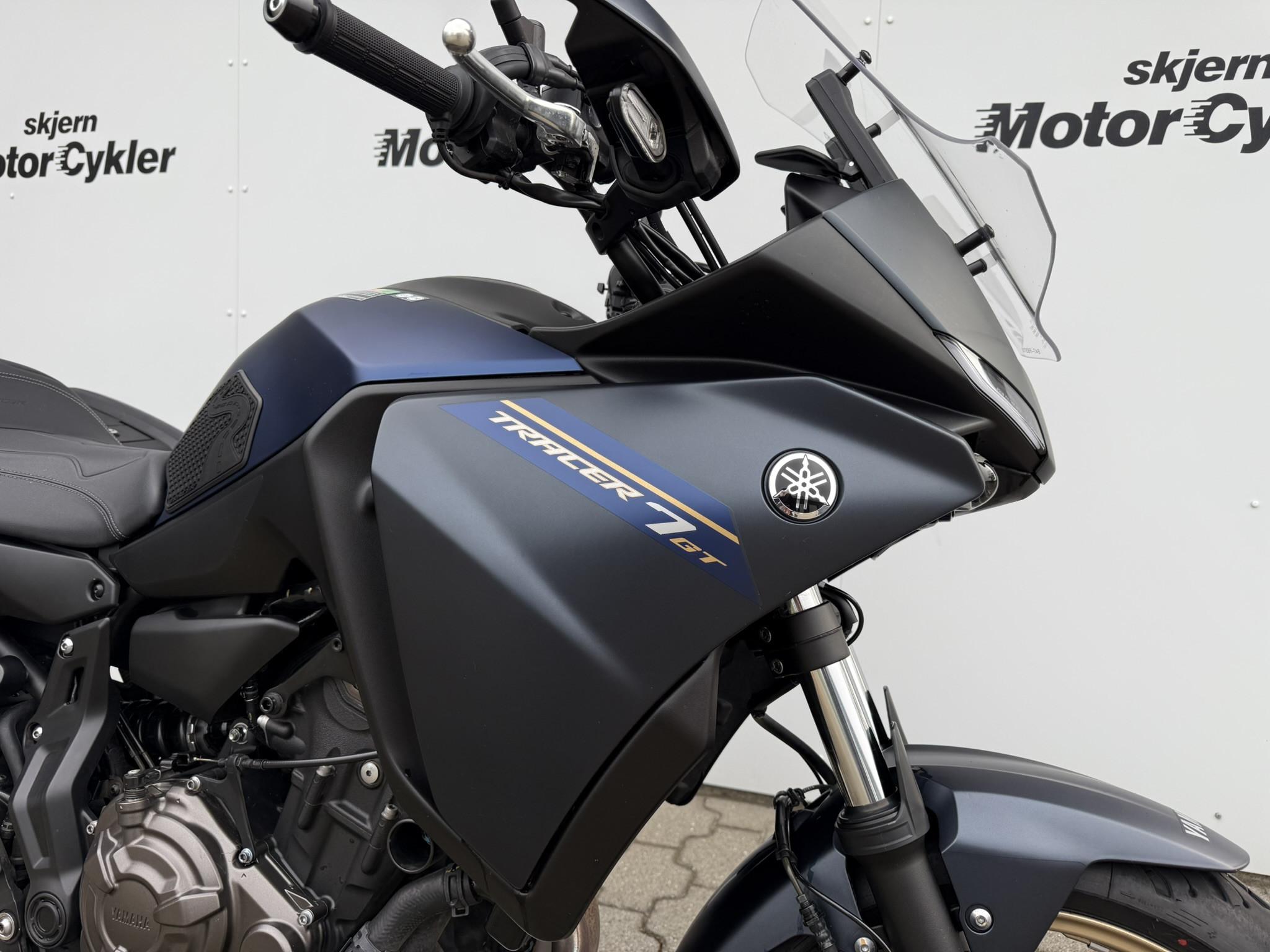 YAMAHA TRACER 7 GT // , ABS bremser, gearindikator, infocenter, centralstøtteben, 12V udtag, indsprøjtning, halvkåbe, quickshift, håndbeskytter, bluetooth, LED baglygte, LED forlygte, 1 ejer, topboks, sidetasker, A2 kørekort muligt, tankpad, comfort sæde,