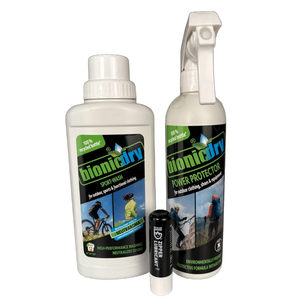 Bionicdry Power Protector Spray – Imprægneringsspray, der beskytter tøj og fodtøj mod vand og snavs, uden at gå på kompromis med stoffets åndbarhed. Ideel efter vask med Sport-Wash for langvarig beskyttelse.