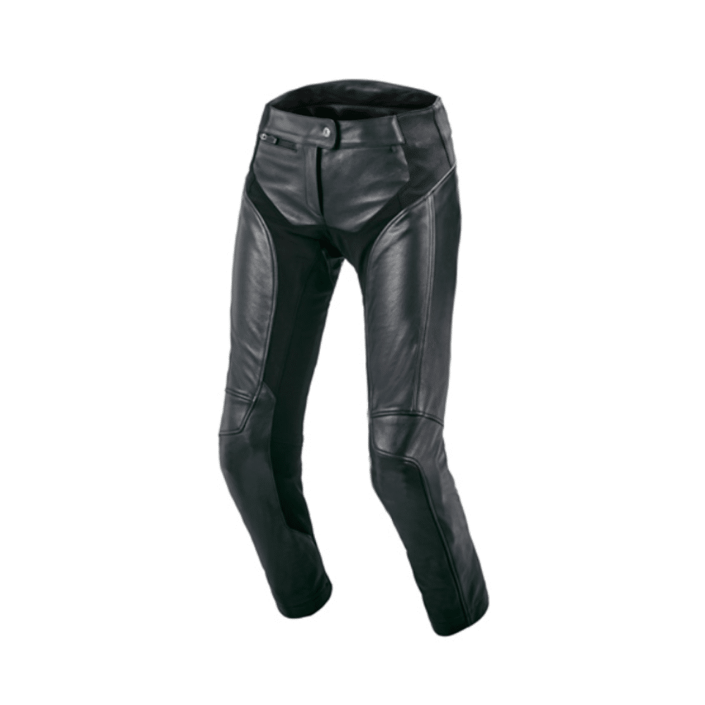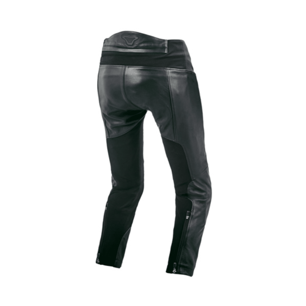 Macna Mohita dame læderbuks kombinerer stil og funktionalitet med stretch-paneler for bevægelsesfrihed, justerbare knæbeskyttere og forberedelse til hoftebeskyttere.